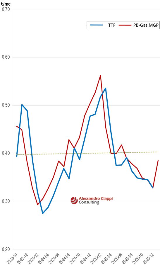 Valori in €/mc | V | MGP Gas | TTF | (Cmem) P_INGm |